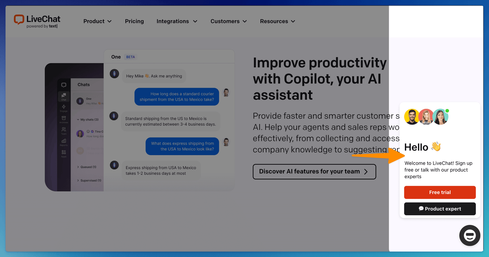 ChatBot Greetings are displayed above the Chat Widget and can be customized. These greetings start the chat but can’t direct users to a specific place in the bot. LiveChat Campaigns can do it.