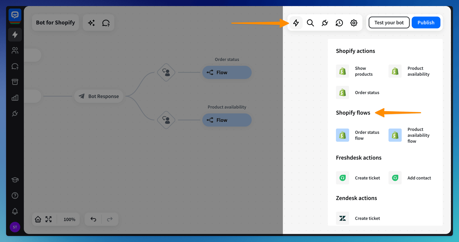 Shopify flows are pre-configured, task-specific chatbot structures that you can add to your bot to speed up the build process.